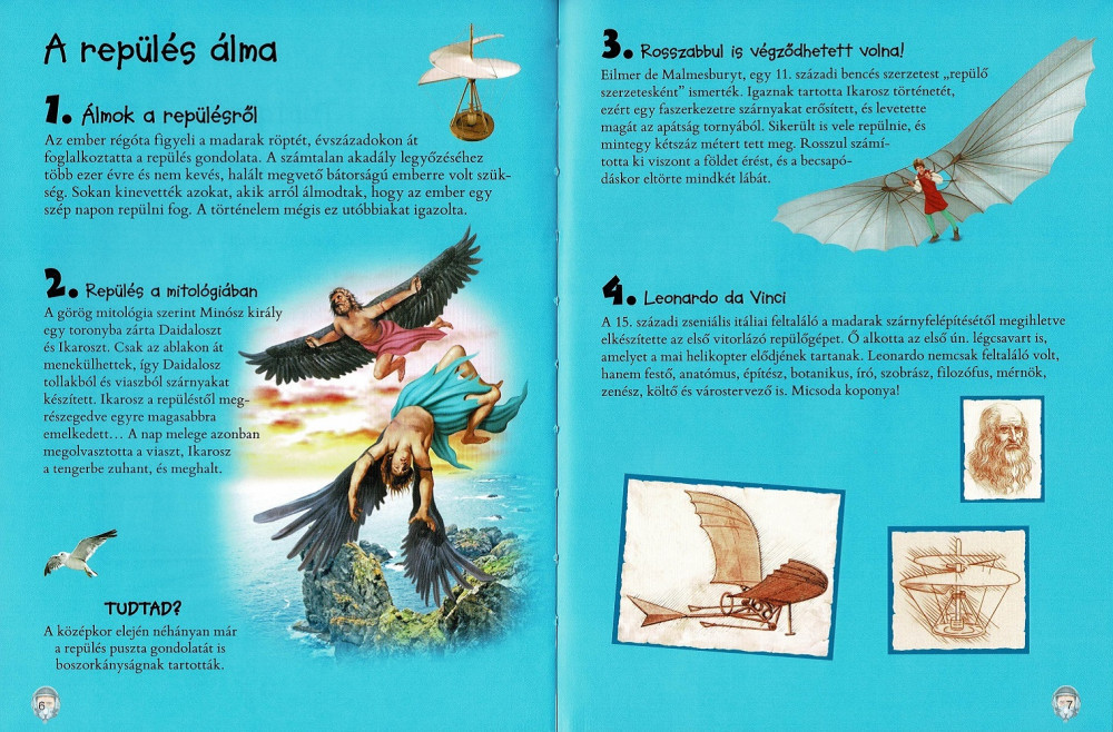 Fedezd fel a repülés történetét! Kövesd végig a fejlődést az első próbálkozásoktól a modern technika csúcsteljesítményéig. Olvass a legnagyobb, a leggyorsabb vagy éppen az első repülőgépekről és ismerd meg ezt a lenyűgöző tudományterületet. Az 101 szócikk segítségével mindent megtudhatsz, amit tudni érdemes.
