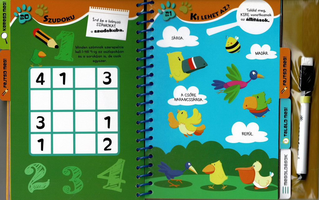 A kötet erőssége a rövid, jól körülhatárolt feladategyégekben rejlik: minden oldal önálló sikerélményt ad, így utazás közben, várakozáskor vagy akár egy délutáni pihenőben is elővehető. A mellékelt letörölhető tollnak köszönhetően bátran lehet próbálkozni: ha a megoldás nem tetszik, egy mozdulat és kezdődhet elölről. Ez a „hibázz nyugodtan” szemlélet magabiztosságot ad, csökkenti a frusztrációt, és nyitottabbá teszi a gyerekeket az új stratégiák kipróbálására.