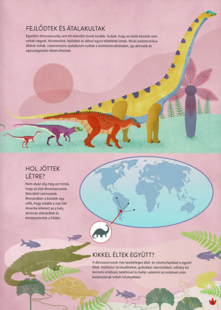 A könyv nemcsak a dinoszauruszok megjelenésének és életmódjának részleteit tárja fel, hanem választ ad arra is, hogyan és miért haltak ki ezek az elképesztő teremtmények. A különféle elméletek középpontjában áll a híres meteorit becsapódása, amely végül véget vetett a dinoszauruszok uralmának. Emellett megismerhetjük, hogyan fedezték fel a fosszíliáikat, és milyen szerepet játszanak a paleontológusok a múlt felfedezésében.