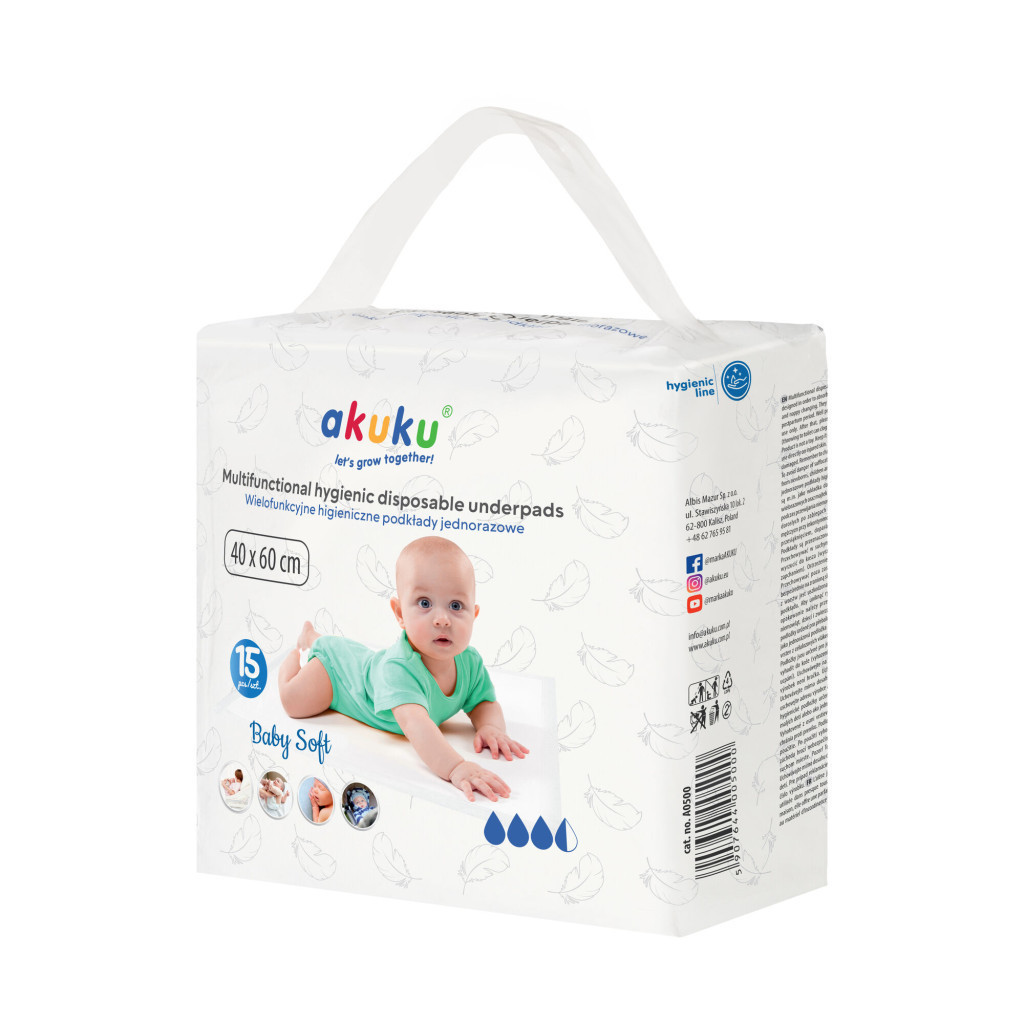 Az AKUKU termékcsalád híres minőségi és megbízható termékeiről, amelyek megkönnyítik a szülők életét. Az eldobható higiénikus alátétek nemcsak kényelmesek és praktikusak, hanem segítenek fenntartani a higiéniát és a tisztaságot minden helyzetben. Ideális választás mind otthonra, mind utazások során.