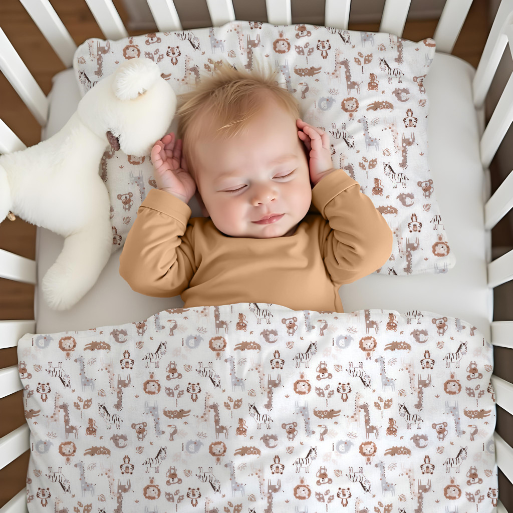 • Az ágyneműgarnitúra méretét 1-5 éves gyermekek számára tervezték. Tökéletes egy kisgyermek ágyába, vagy a bölcsődei vagy óvodai alváshoz.