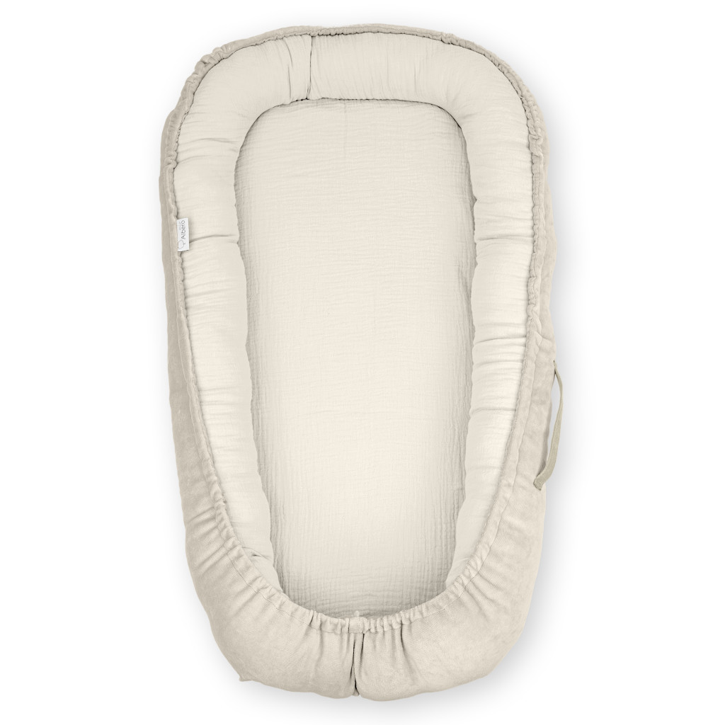 • A babafészek alja és oldala duplarétegű géz anyagból állnak, így puha a baba bőrének, és rendkívül jó szellőzést biztosít