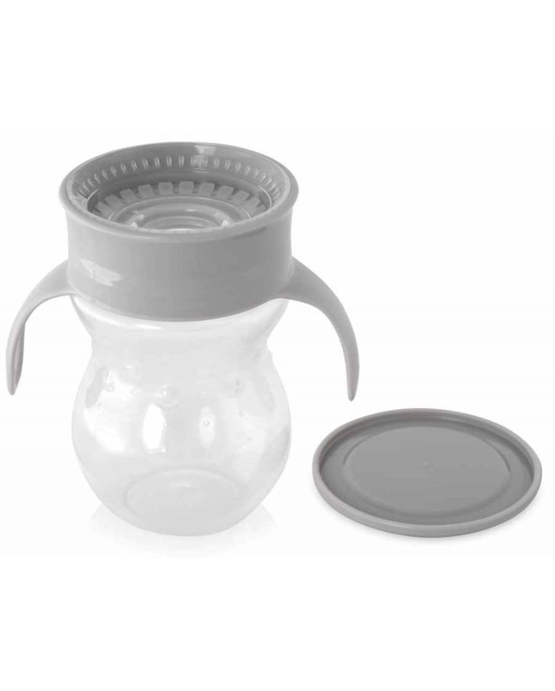 360°-os kialakítása által a szivárgás teljesen megszüntetett és a kicsi bárhonnan tud inni. A pohár automatikusan bezárja magát amikor a gyerek ivott belőle, a fogantyú pedig segítik a tartását a kisebb gyerekeknek.