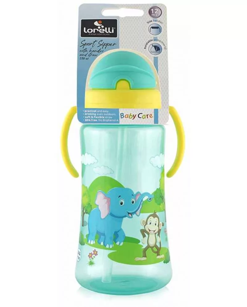 Baby Care Szafari szívószálas sportitató 330 ml - green