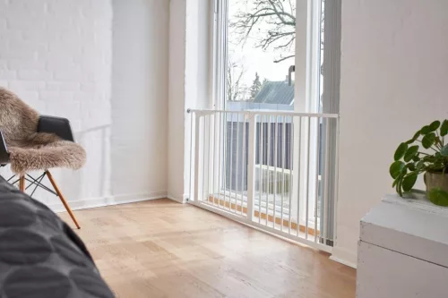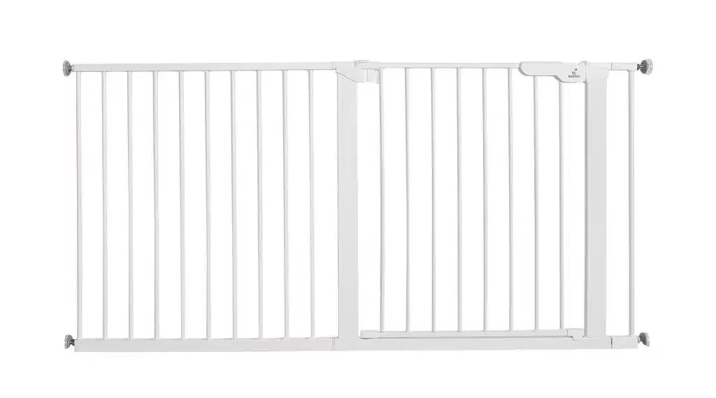 A Baby Dan Asta extra széles védőrács 151 cm széles és önfeszítő rendszerrel rögzül, így segítségével könnyedén biztosíthatsz nagyon széles átjárókat, vagy akár folyosókat. Nagy előnye, hogy rögzítéshez nem kell kifúrni sem a falat, sem az ajtófélfát.