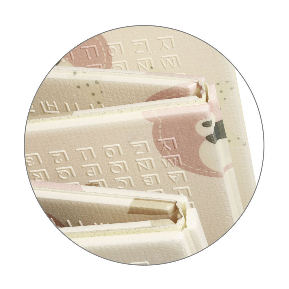 • A kétoldalú összehajtható szőnyeg színes és változatos mintákat és textúrákat kínál, amelyek segítik fejleszteni a babák látását és tapintását