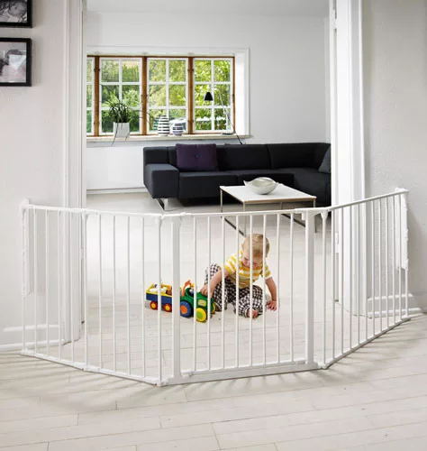 A Baby Dan Flex L védőrácsával bebiztosíthatsz olyan átjárókat, ahova az ajtórácsok rövidek. Így elzárhatod csöppséged elől például a kandallót, a kályhát, vagy a sarokban elhelyezett egyéb dolgokat. De akár járókat is kialakíthatsz belőle.