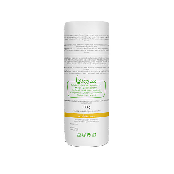Aloe vera tartalmának köszönhetően száraz és érzékeny bőrre is ajánlott bőrnyugtató hatású baba hintőpor.