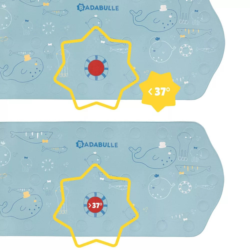 Használd a Badabulle XXL méretű csúszásgátlóját a fürdőkádadba, melynek jelzőfénye világít, ha a víz hőmérséklete meghaladta a 37°C-ot!