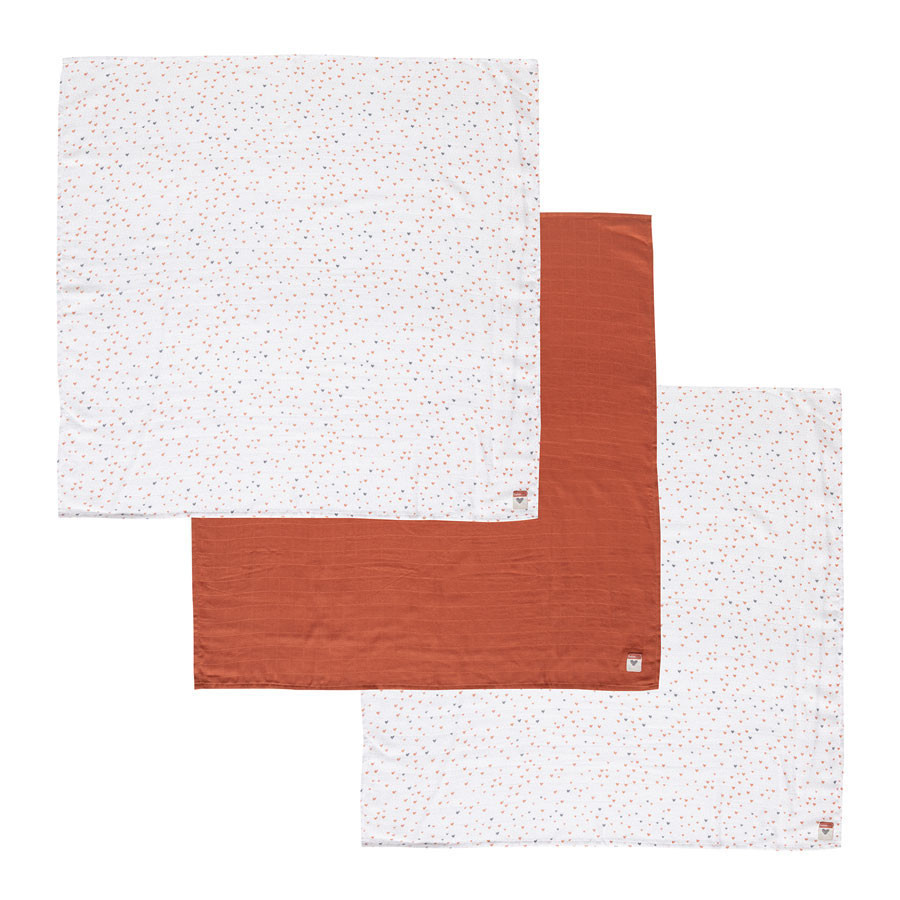 Bébé-Jou Muszlin pelenka 70 x 70 cm szett 3 db - Fabulous Hearts