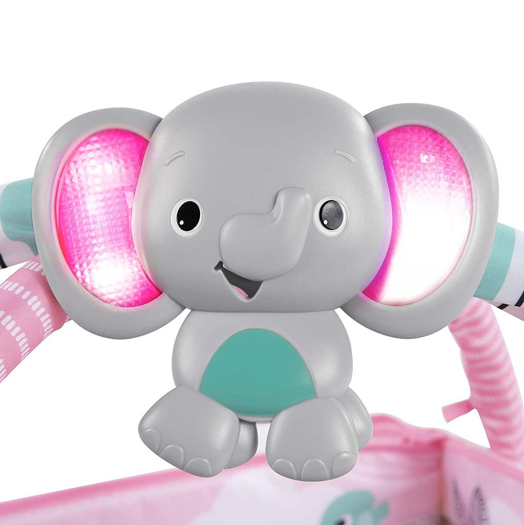 • A zenélő elefánt alakú játék könnyen rögzíthető a játékhídhoz és a legtöbb kiságyhoz