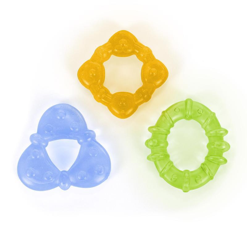 A három különböző formájú, hűtőben lehűthető rágóka, megnyugtatja babád ínyét. A lekerekített formák és a speciálisan kiválasztott színek segítenek gyermekednek gyakorolni a fogást, átvenni tárgyakat egyik kézből a másikba és megismerni a színeket.