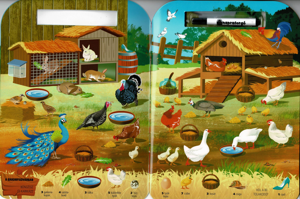 A Böngéssz és karikázz! – A tanyán a legkisebb felfedezők kedvence lesz: játékos, újra és újra elvégezhető feladatokkal vezeti be a gyerekeket a tanya izgalmas világába. A kötet lényege egyszerű és ellenállhatatlan: fedezd fel, keresd meg, karikázd be! A részletgazdag, vidám rajzokon rengeteg megbújó apróság várja, hogy a gyerekek filctollal megkeressék és bekarikázzák. A legjobb rész? A jelölések egy mozdulattal letörölhetők, így a könyv korlátlanul újrajátszható!