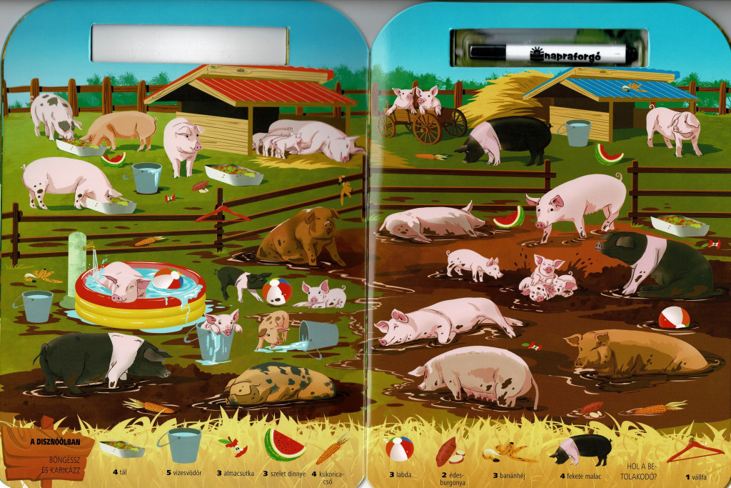 Mit ad hozzá a sorozat különlegessége? A letörölhető, filctollal használható oldalakon a „keresd meg és karikázd be” mechanika azonnali sikerélményt kínál. A tematika a gyerekek természetes kíváncsiságára épít: a tanyán zajló élet tele van mozgalmas jelenetekkel, állathangokkal és ismerős tárgyakkal, amelyekkel könnyű kapcsolatot teremteni. A vizuális rejtvények változatos nehézségűek, így az óvodás korosztály különböző szintjein is motiváló kihívást jelentenek.