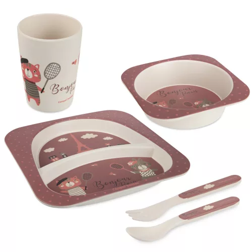 • Az aranyos nyomatokkal ellátott BONJOUR PARIS gyermek étkészlet evésre ösztönzi gyermekedet