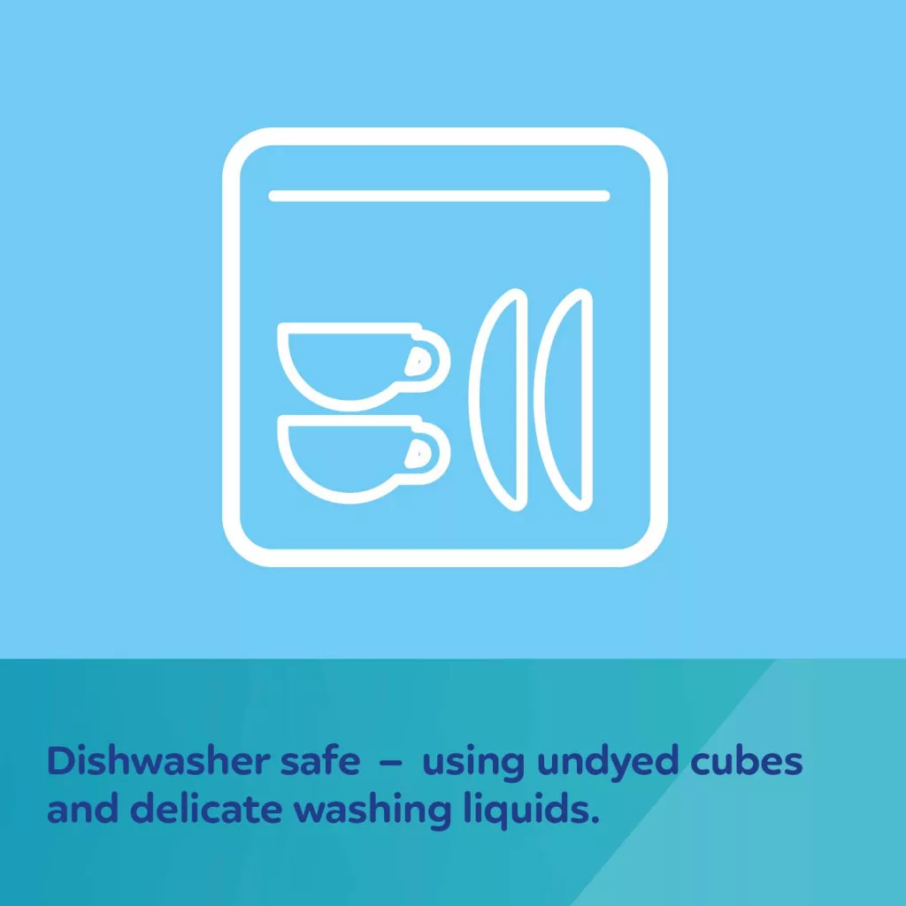 • Mosogatógépben mosható, színtelen mosogatógép tablettákkal és enyhe mosogatószerekkel