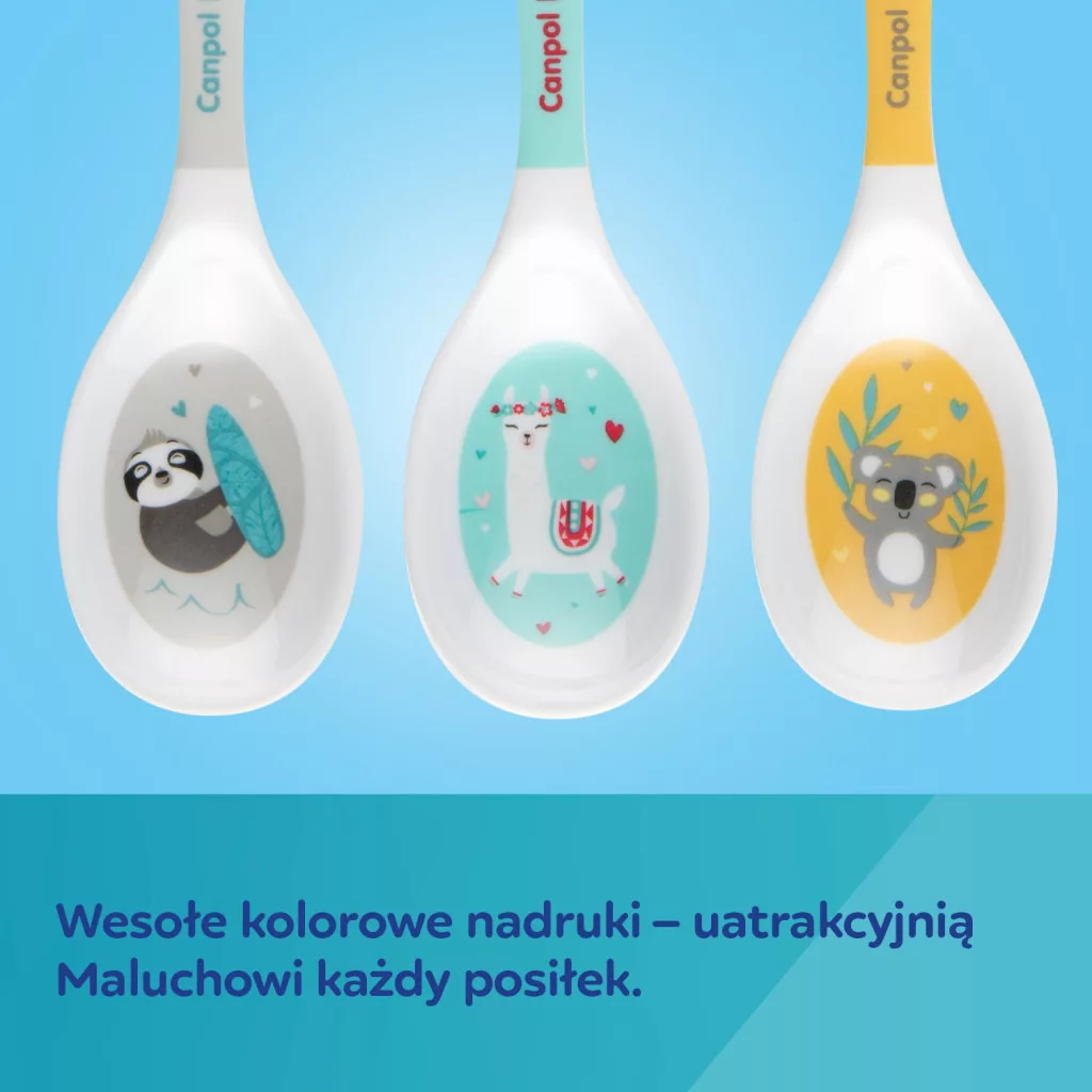 A Canpol babies EXOTIC ANIMALS kollekcióhoz tartozó két kanál, karcálló anyagból készült és lekerekített szélei nem bántják kisbabád gyengéd fogínyét.