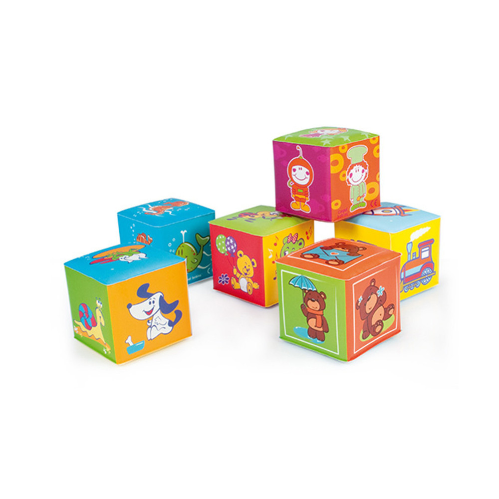 • A puha, színes kockák mesés illusztrációkkal minden gyermek figyelmét felkeltik