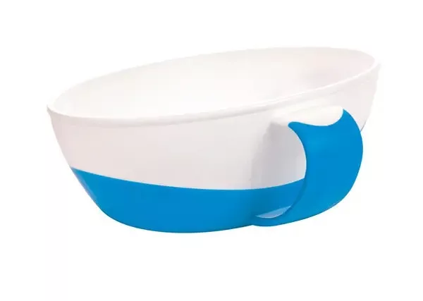 • A tál fogantyúja, szélei és alja gumiborításúak, így a tál nem csúszik, miközben a kezünkben tartjuk vagy az asztalra helyezzük