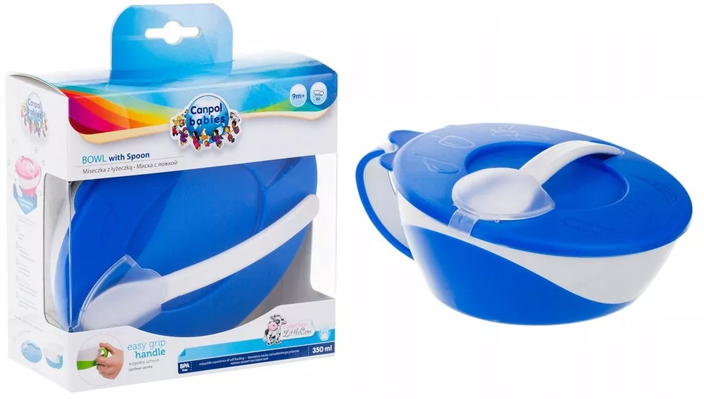 Canpol babies Tál kanállal és fedéllel, 350ml, LITTLE COW - kék