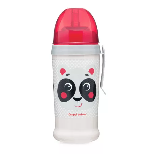 Canpol babies Cseppmentes sport itatópohár, szilikon szívószállal, 350 ml, HELLO LITTLE - piros