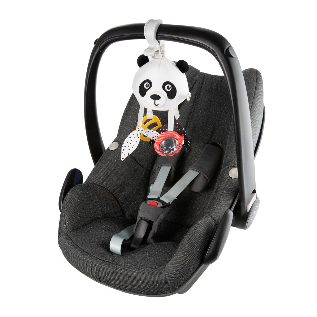 A BabiesBoo kollekcióból származó, szenzoros felakasztható utazójáték, szórakoztatja kisbabádat az autóban, babakocsiban vagy a kiságyban. Az élénk mintázatú, kontrasztos panda, a kellemes zörgő hangok, a csipesz és a nagy tükör lekötik és támogatják a gyerkőcöd fejlődő érzékeit.