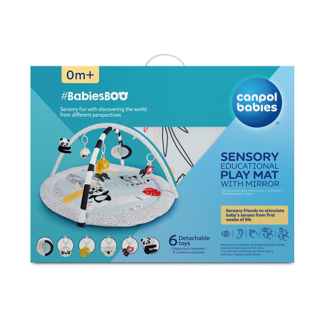 A BabiesBoo szenzoros játszószőnyeg tükörrel lehetővé teszi, hogy kisbabád különböző szögekből fedezze fel a világot. A különböző textúrák, a kontrasztos színek és a lágy hangok nagyszerű szórakozást nyújtanak csöppséged fejlődő érzékszerveinek már újszülött kortól.