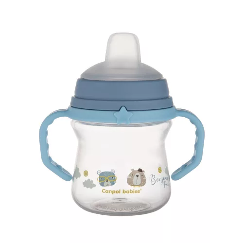 Canpol babies Itatópohár szilikonos ivócsőrrel, FirstCup, 150 ml, Bonjour Paris - kék