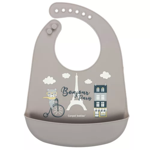 Canpol babies Szilikon zsebes előke, BONJOUR PARIS - navy bézs