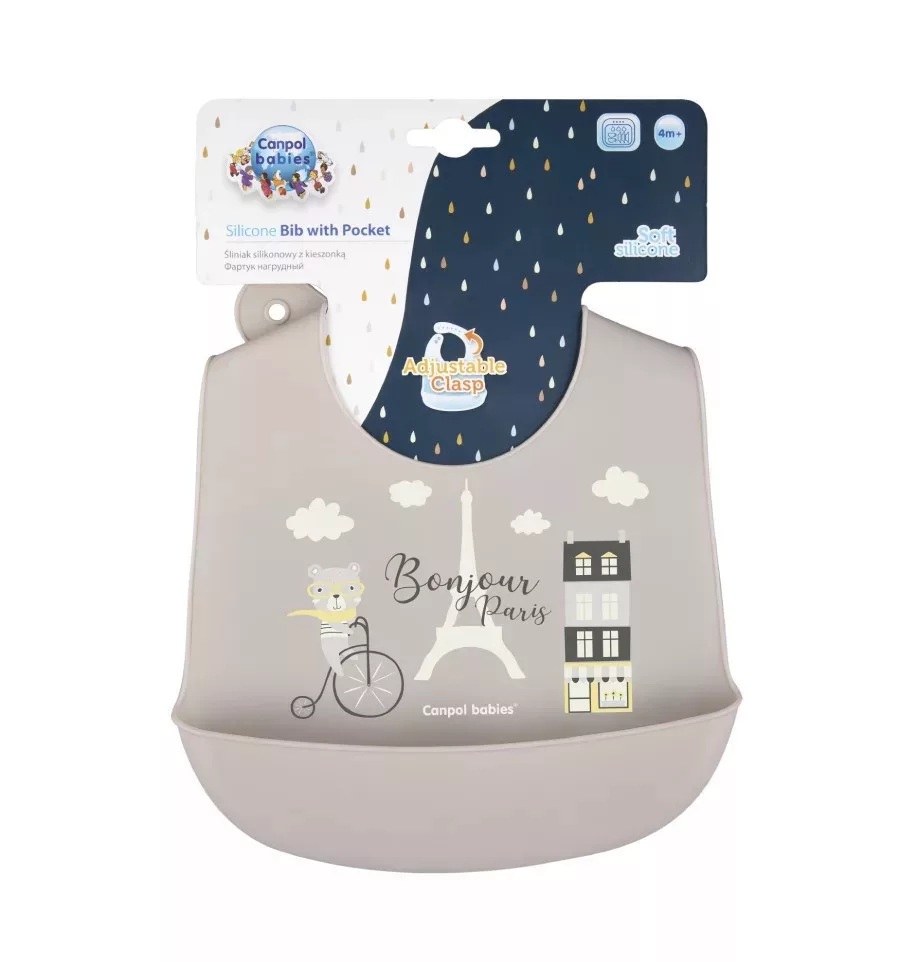 A Canpol babies trendi, szilikon partedlije kényelmes zsebbel rendelkezik, amely megállítja a leeső ételmaradékokat, így megkíméli kisbabád ruháit a szennyeződésektől.