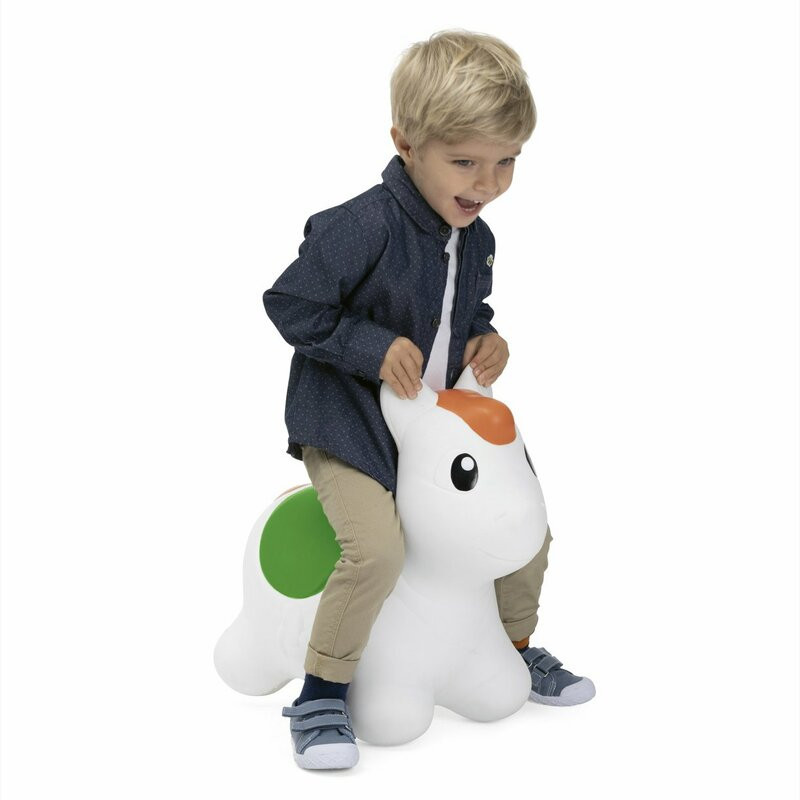 Engedd szabadon a gyerek energiáját a felfújható Chicco Rodeo lovacskával! Ugrálás, szökdécselés, nevetés beltéren és kültéren egyaránt. Ergonomikus nyereg és kapaszkodó fülek biztosítják a stabil, biztonságos játékot.