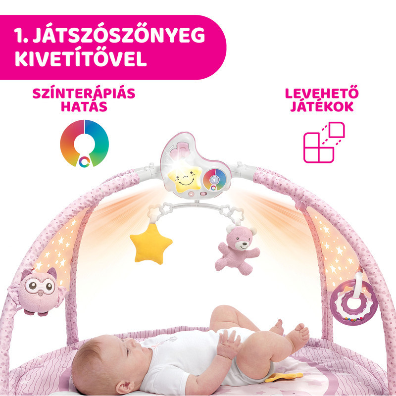 Chicco Játszószőnyeg projektorral játékhíddal pink