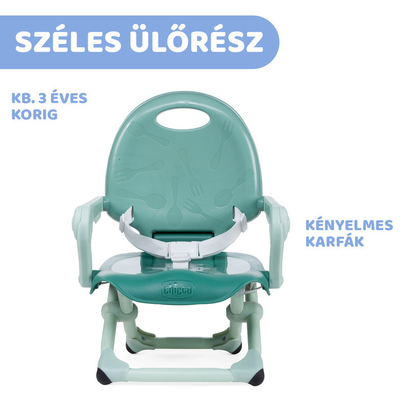 A Chicco Pocket Snack székmagasító kiváló megoldás étteremben, illetve vendégségben, ha gyermeked nem éri fel az asztalt. Mivel ultrakönnyű, így utazásokkor is magaddal viheted.