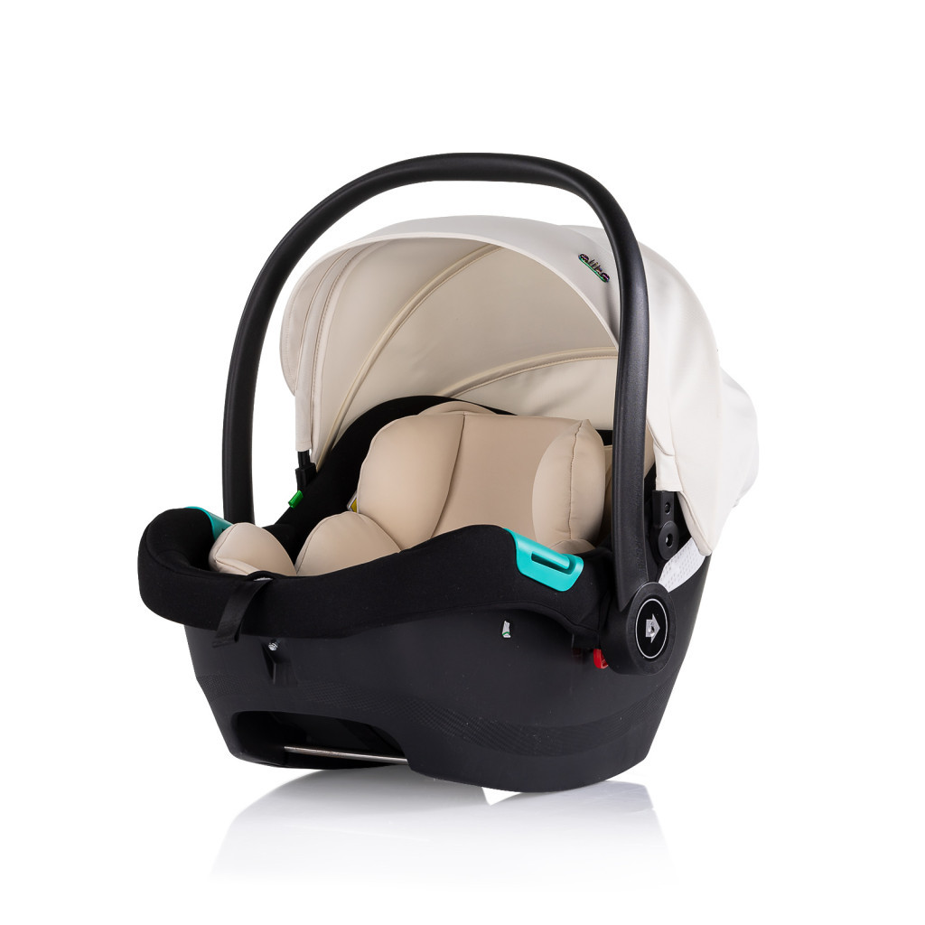 A 13 kg-ig használható autóshordozó megfelel az ECE R44-es európai szabványnak. Könnyedén ráhelyezhető a vázra. Ergonomikus fogókarja teljesen hátratolható, így egyszerűen berakhatjuk a babát az ülésbe. Rendkívül puhán párnázott szűkítőbetétje tökéletesen védi az újszülött babát is. Egyenes talajra helyezve ringatható, mely megnyugtatja és elaltatja a picit.