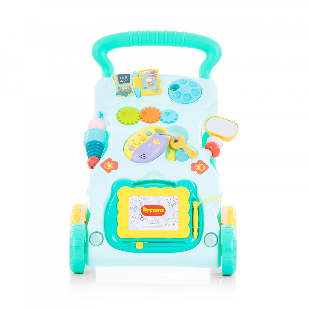 Szórakoztató központ és járássegítő egyszerre, amely több különböző készségfejlesztő játékot tartalmaz, így játék közben fejlődnek a kicsi készségei.