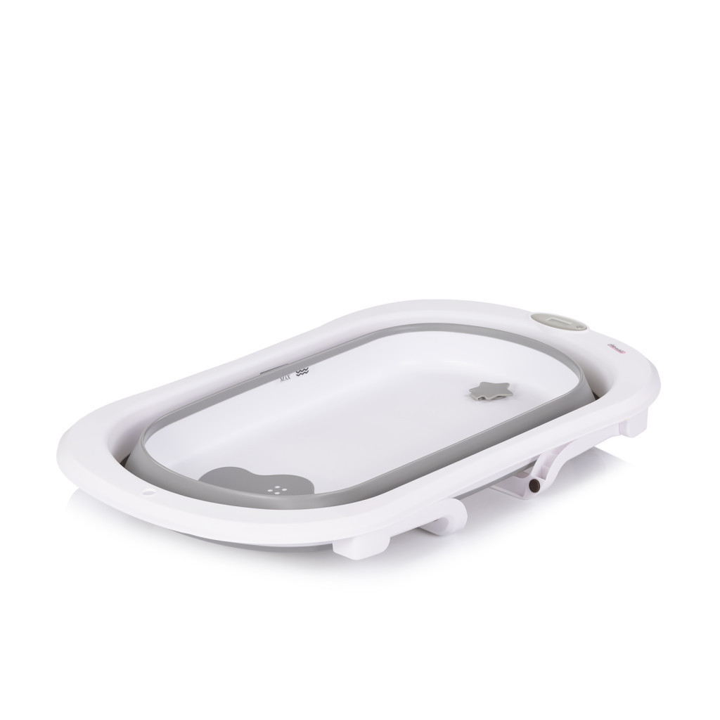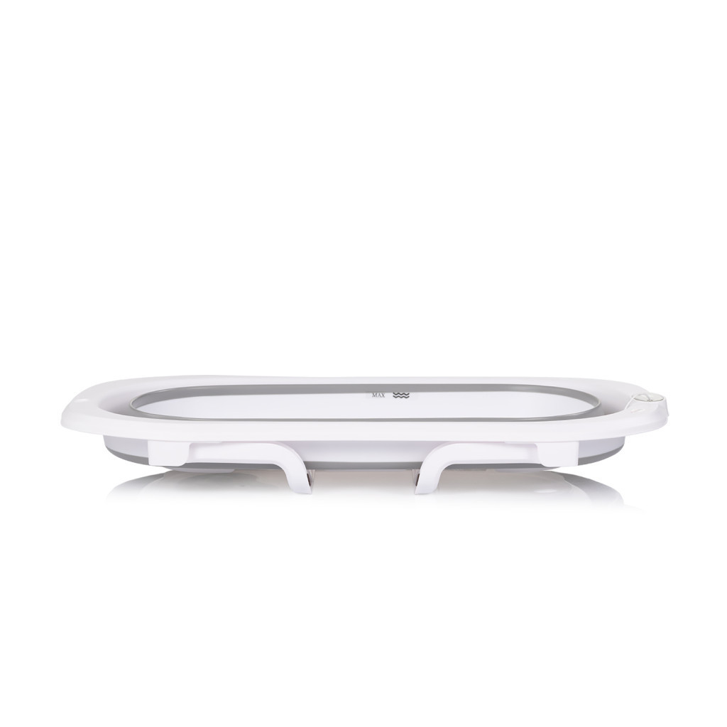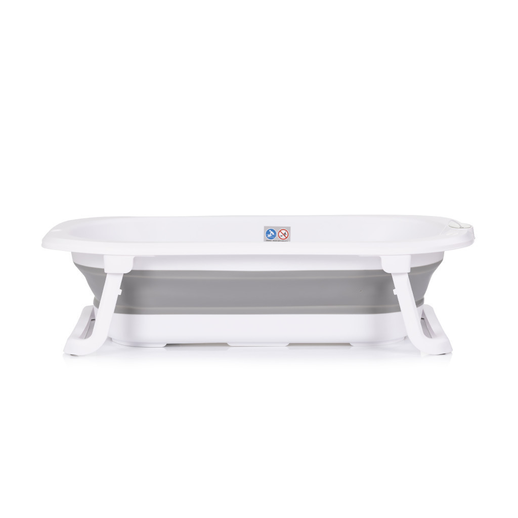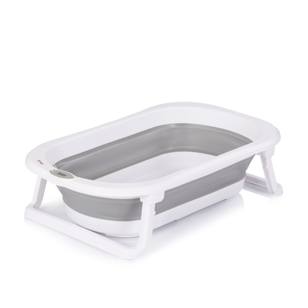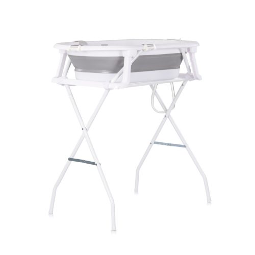 • Összecsukható fém állvány – kényelmes magasságba emeli a kádat, védve a szülők hátát.