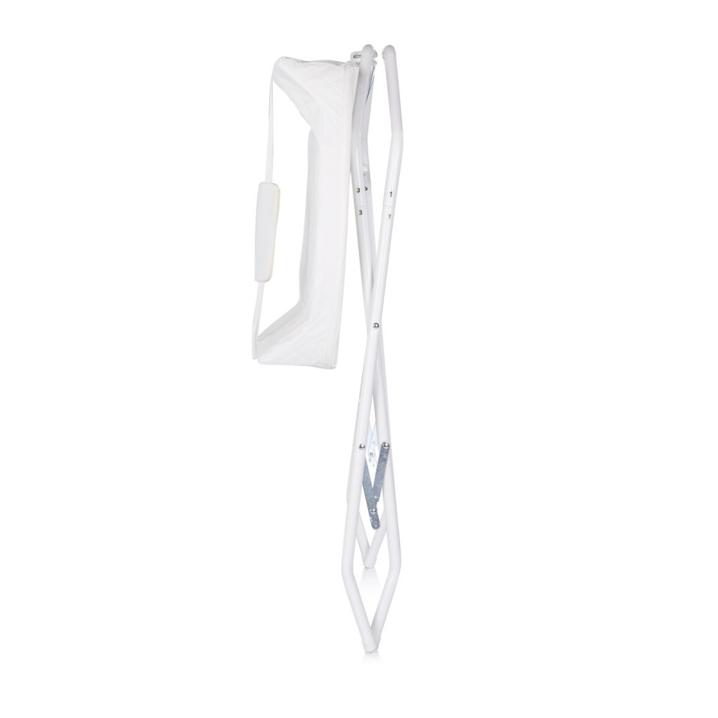 • A masszív fém állvány kényelmes magasságban tartja a kádat, csökkentve a szülők hátára nehezedő terhelést