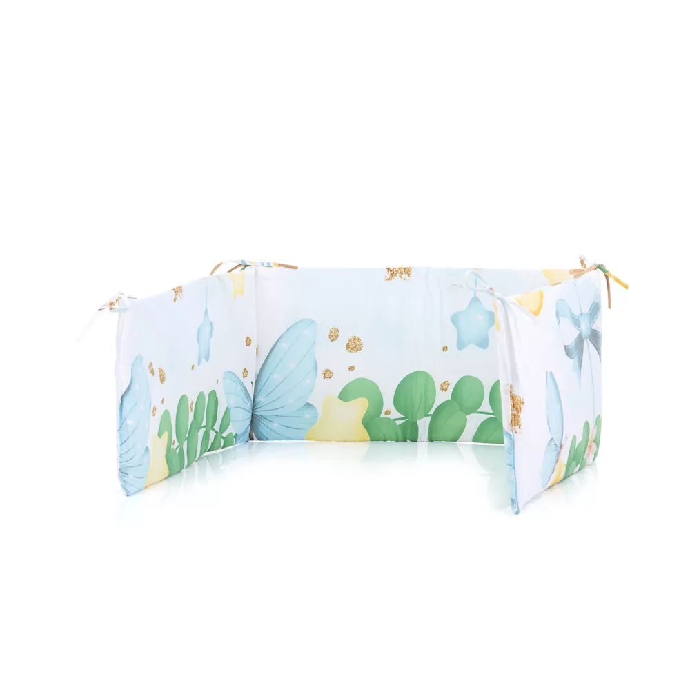 Magas minőségű pamut rácsvédő kiságyra, mely mintájában harmonizál az 5 részes ágyneműkkel.