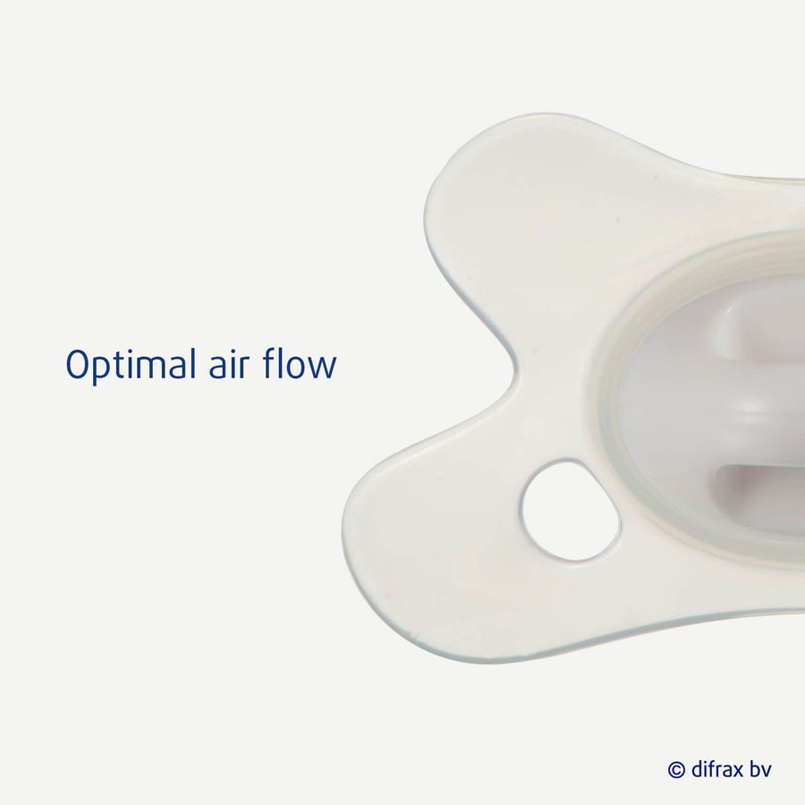 Az egyedi Difrax cumi pillangó formájának köszönhetően megfelelően illeszkedik a baba szájához és arcához, szabadon hagyva az orrát a megfelelő légzés érdekében. A cumin található két nyílás biztosítja a megfelelő levegőellátást, csökkentve ezzel a csecsemő bőrének esetleges irritálását. A cumi kényelmet és nyugalmat biztosít a babának. A Difrax cumik több dizájnos kivitelezésben és különböző színekben kaphatók.
