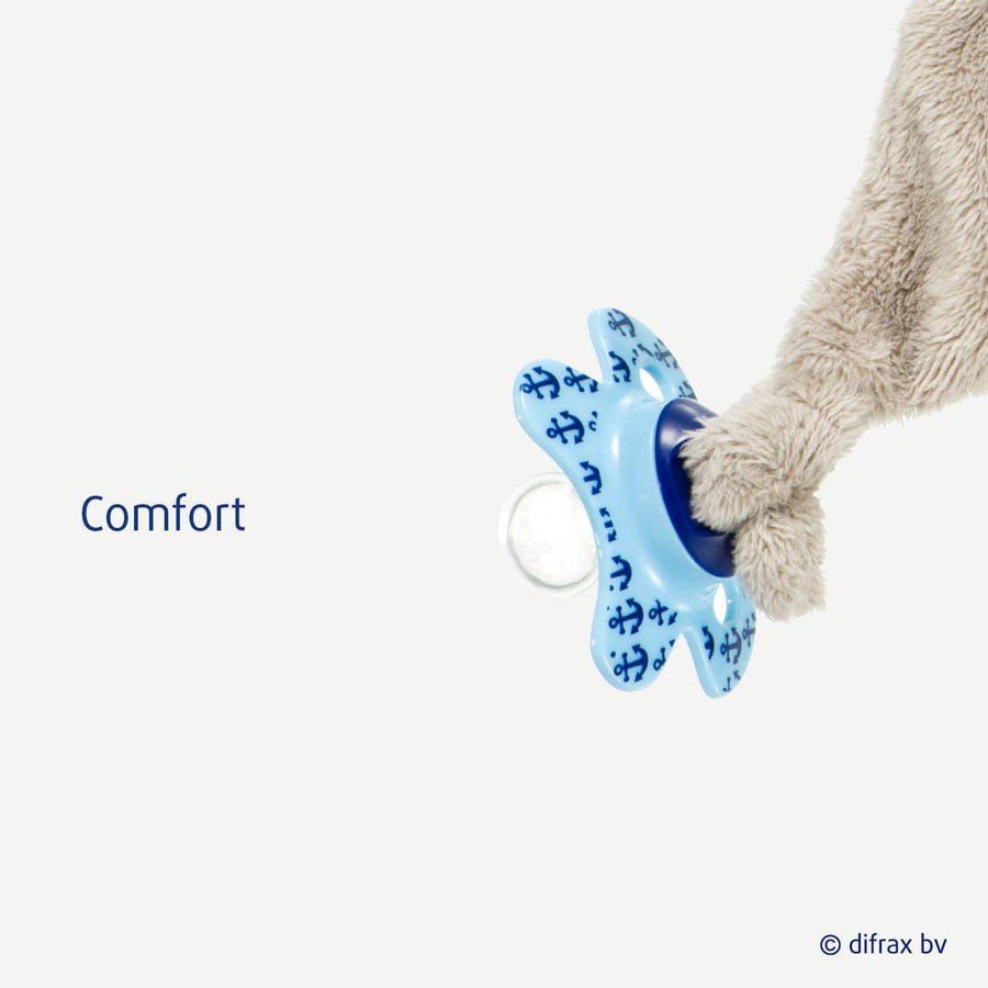 A Difrax kis plüss játékát könnyedén a cumira lehet akasztani. Így tökéletes helyen van, ahol a kicsi mindig eléri és nem csupán a cumival tudja magát nyugtatni, de még a játékkal is. A gyerekek könnyedén kialakítják szokásaikat, melyek segítenek nekik az elalvásban. Egy plüss játékkal való szórakozás ezen nyugtató tevékenységek közé tartozik, melyek megelőzik az elalvást.