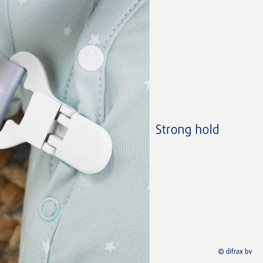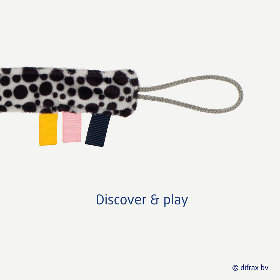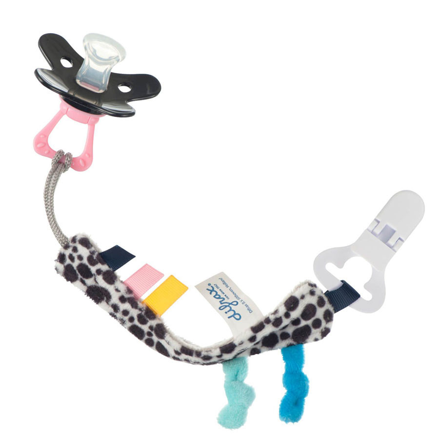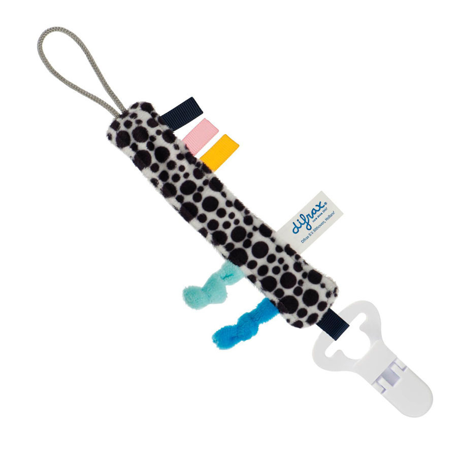 A cumilánc biztosítja, hogy a cumi mindíg kéznél van, és nem veszik el olyan könnyen. A Difrax plüss cumilánc praktikus és biztonságos is, egyszerűen összekapcsolható a cumival. A másik végét pedik egy egyszerű csattal hozzá kapcsolhatja kicsinye ruhájára. A színes szalagok pedig biztos lefoglalják a kicsi figyelmét.