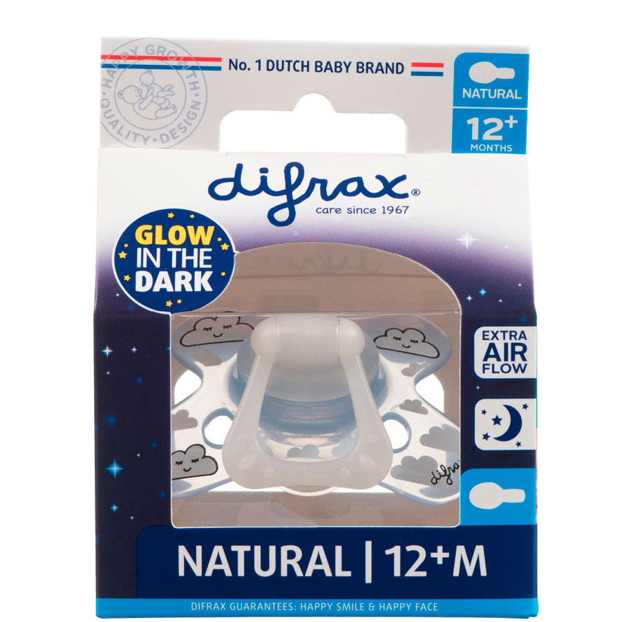 A Difrax cumi megnyugtatja a gyermeket és az anyát is. A Difrax cumi kényelmet és nyugalmat biztosít a babának és a mamának is, mivel a baba a cuminak köszönhetően olyankor is biztonságban érzi magát, amikor nincs mellette az édesanyja. Amikor nőnek a fogak, nyomást gyakorolnak az ínyre. Ilyenkor az egyik leggyorsabb gyógymód a cumi. A cumi gyengédebb az első fogakhoz, mint a baba hüvelykujja, higiénikusabb és biztonságosabb. A későbbiekben pedig könnyebb leszoktatni a gyereket a cumiról, mint a hüvelykujj szopásáról. Az anatómiai kialakítású szilikon szívóka rész ebben a kategóriában a keménység szempontjából jó kompromisszum a puhább 6+ és keményebb 18+ kategória cumijai között. Így a 12+ kategóriás cumi megfelelő segítőtárs a cumiról való leszokásban.