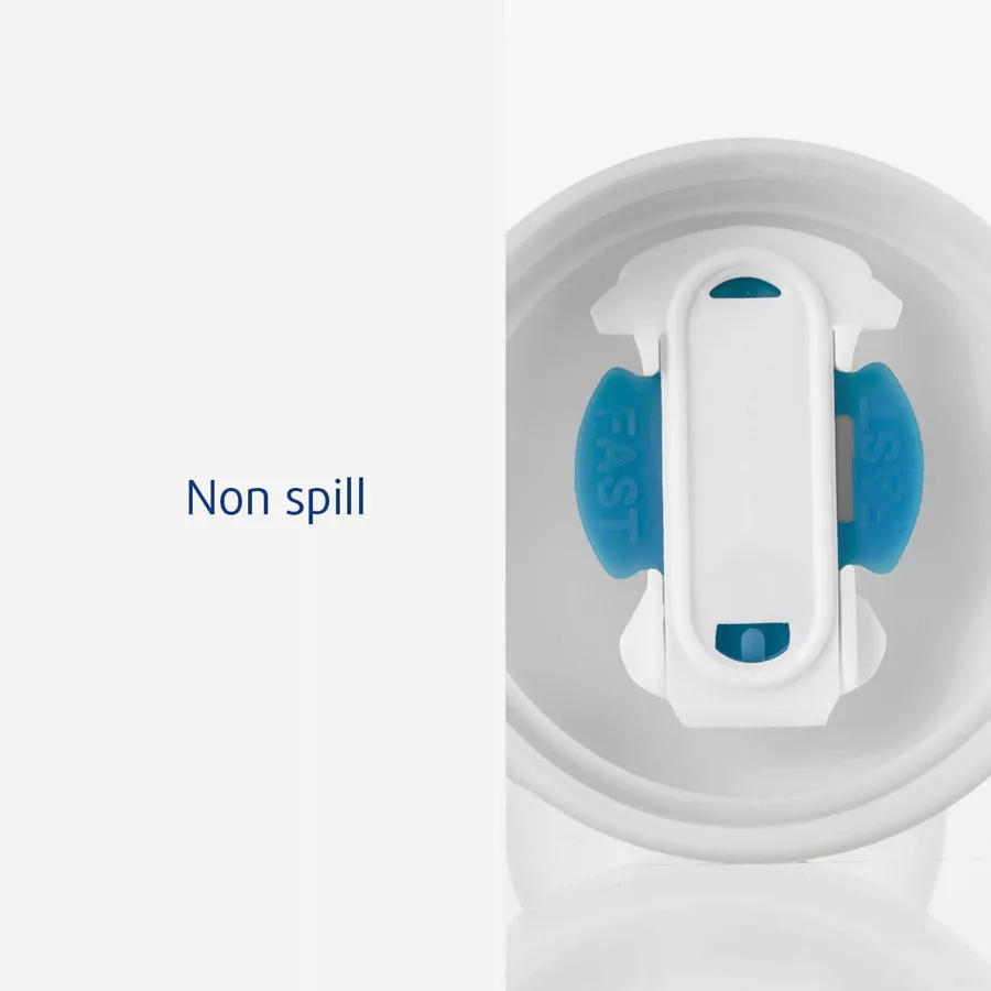 • A két fogantyú könnyű tartást biztosít, az ivócső pedig egyedi szeleppel rendelkezik, amely lehetővé teszi a kétféle átfolyás beállítását, miközben megakadályozza a kifolyást