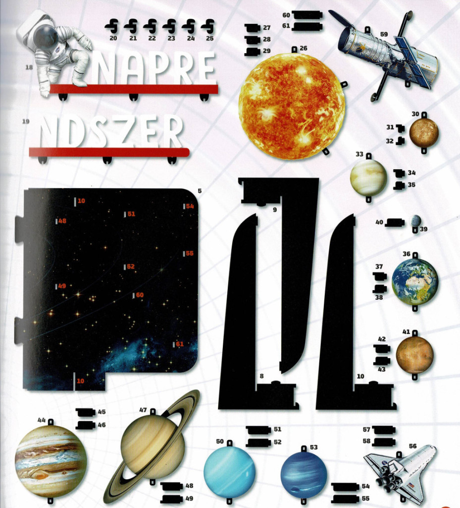 A Dioráma – A Naprendszer egyszerre kézzelfogható alkotás és szemléletes ismeretterjesztés: a gyerekek nemcsak elolvassák, hanem meg is építik a Naprendszer látványos, térbeli modelljét. A kötet az ismereteket rövid, jól érthető magyarázatokban adja át – bolygók, holdak, üstökösök, aszteroidák, a Nap ereje, a keringés és a forgás alapjai –, miközben a könyvben található előre kivágott elemek ragasztás és olló nélkül, egyszerű illesztéssel állíthatók össze. Az eredmény egy stabil, 3D-s jelenet, amely az íróasztalon vagy a polcon is helyet kaphat: saját „mini űrkiállítás”, amit büszkén mutathat be a gyerek.
