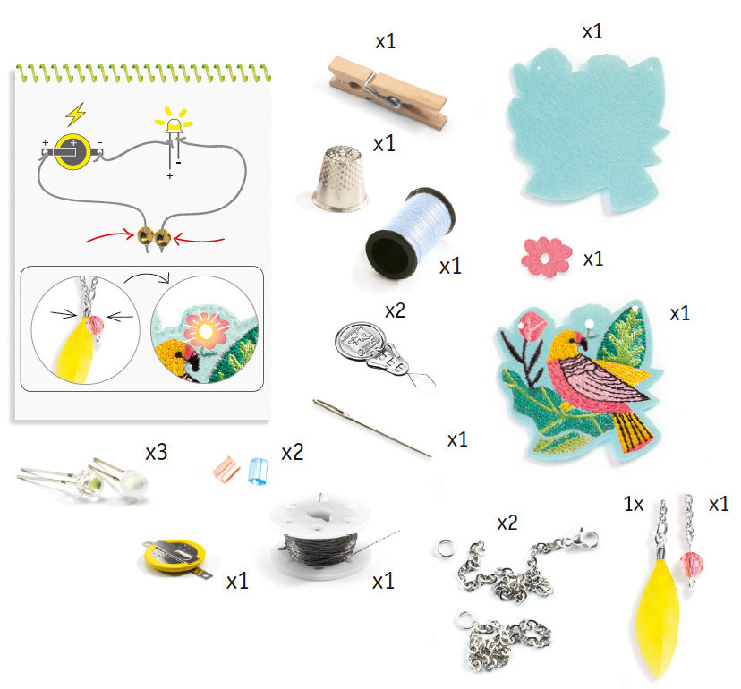 • A játékhoz tartozik egy részletes útmutató, amely lépésről-lépésre elmagyarázza, hogyan készítheted el az áramkört és a nyakláncodat