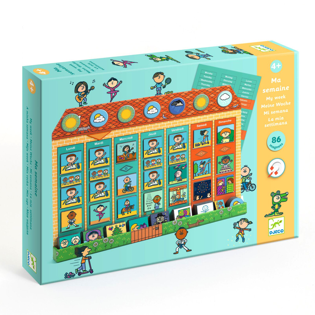 Segíts gyermekednek játékosan beosztani az idejét! Ezzel a ház alakú mágnestáblával a múlt, a jelen és a jövő fogalma könnyedén megérthető. A gyerek először elnevezi a hét napjait, majd mágnesekkel és saját rajzaival tervezi meg a heti teendőket. Sport, művészet, különleges események vagy az időjárás – minden egyszerűen ábrázolható, így a hét minden napja szórakoztatóan szervezett lehet.