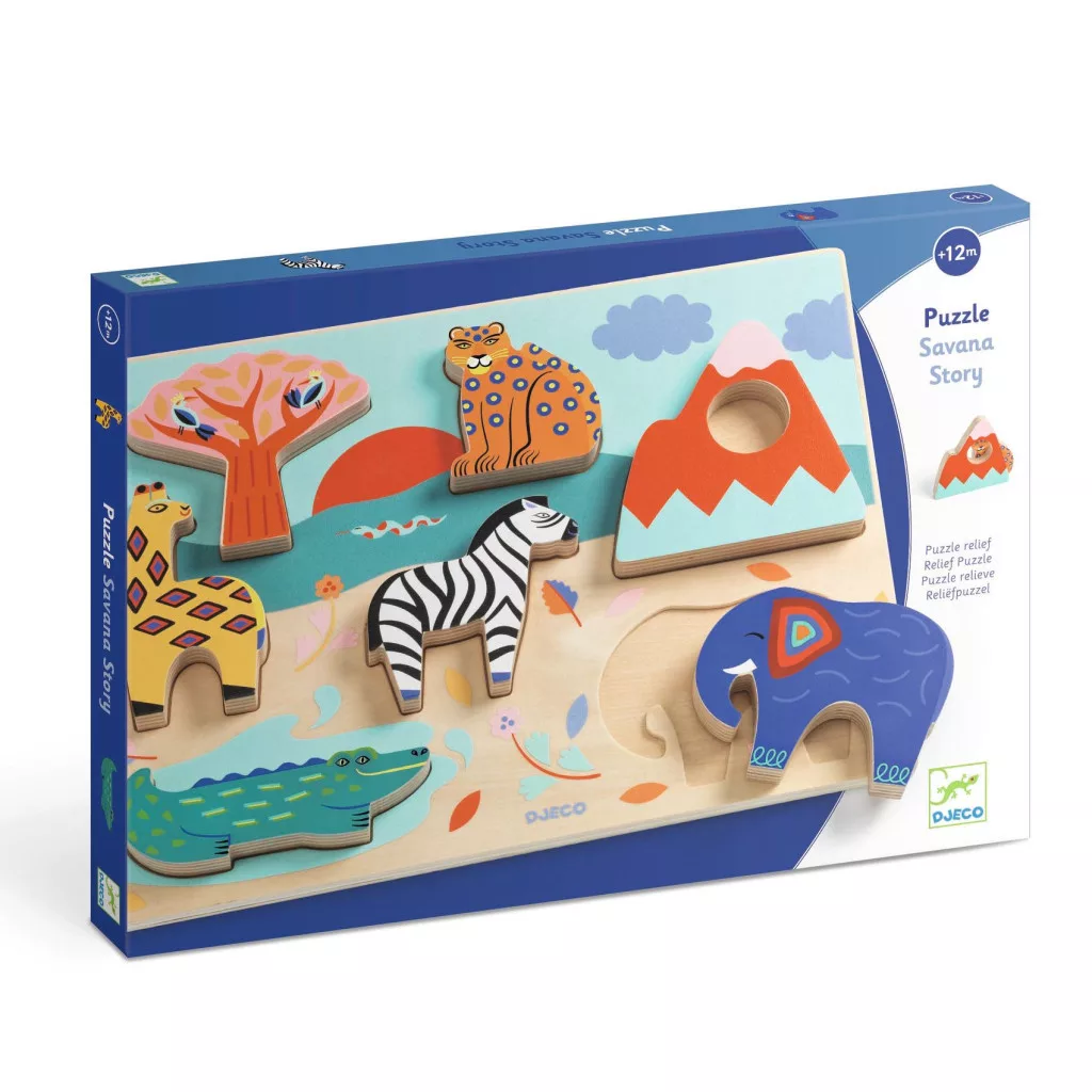 A gyerkőcöd egy színes, állatokkal teli világba csöppen, ahol az oroszlán, az elefánt, a majom és más szavannai lakók várják őt. A fából készült, vidám formák könnyen megfoghatók, és tökéletesek a pici kezek számára – miközben játékosan fejlődnek a motorikus készségek.