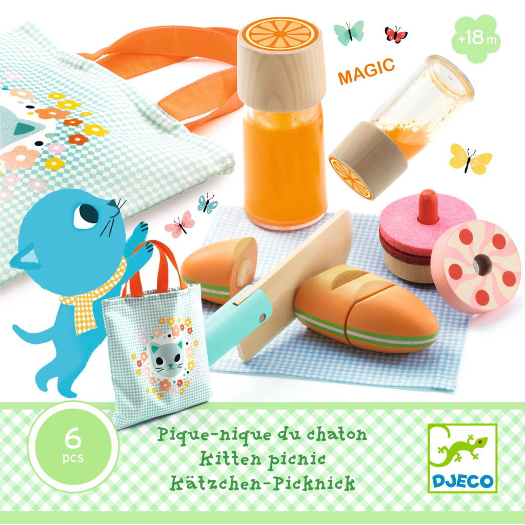 Tarts egy mesés pikniket a legcukibb cicákkal! Pakold a finomságokat a kosárba, teríts le a plédet, és kezdődhet is a cica-piknik! A Djeco imádnivaló szerepjáték-szettjével egy igazán jó hangulatú pikniket tarthat gyermeked a plüssöknek, a játékbabáknak vagy akár neked is.