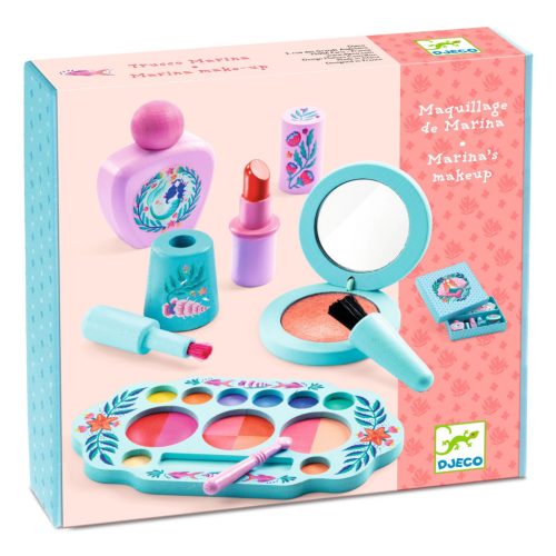 Sminkelj úgy ahogy a profik! Ezzel a gyönyörű, fából készült sminkszettel lányod eljátszhatja, hogy igazi kis sminkmester. A táska belsejében megtalálsz mindent, ami egy szépségszalonhoz kell: rúzs, parfüm, körömlakk, púder, szemhéjfesték, ecsetek és tükör.
