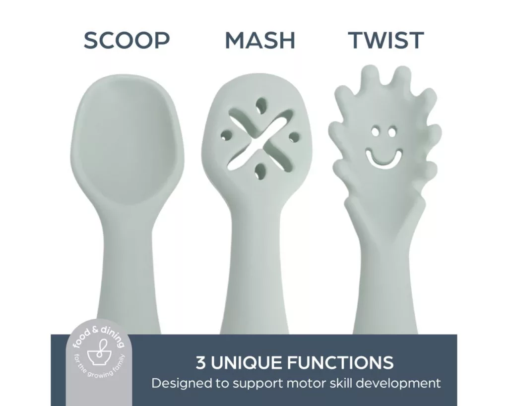 • 3 különböző funkció: Scoop (kanalazás): pürékhez, lágy ételekhez, Mash (nyomás): banán, avokádó pépesítéséhez, Twist (csavarás): csúszós ételekhez, pl. tészta